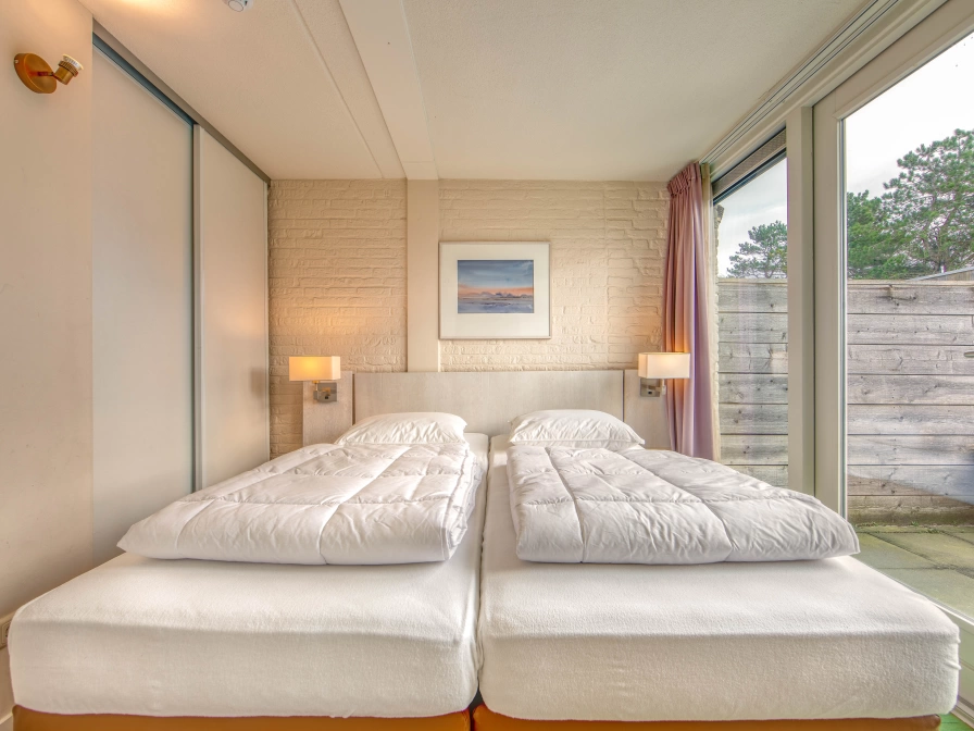 Het resort beschikt over een zwembad en wellness en het mooie brede strand is op 10 min loopafstand. Appartement Duinpad is geschikt voor 4 personen. Dit appartement is gelegen op de benedenverdieping van het resort. Indeling Het appartement is helemaal van deze tijd en van alle gemakken voorzien, zo is de keuken voorzien van onder andere een afwasmachine, combimagnetron en een 4 pits kookplaat. De woonruimte heeft een gezellige zithoek met flatscreen televisie. Het appartement heeft twee aparte slaapkamers, allebei zijn voorzien van éénpersoonsbedden. Dit maakt het appartement ideaal voor vrienden of gezinnen met kinderen. Aan de wanden van dit appartement hangen schilderijen van Waddenschilder Geurt Busser. Buiten Het zonnige royale terras ligt op het zuiden en is voorzien van een parasol, comfortabele loungestoelen en een tweepersoons loungebank.