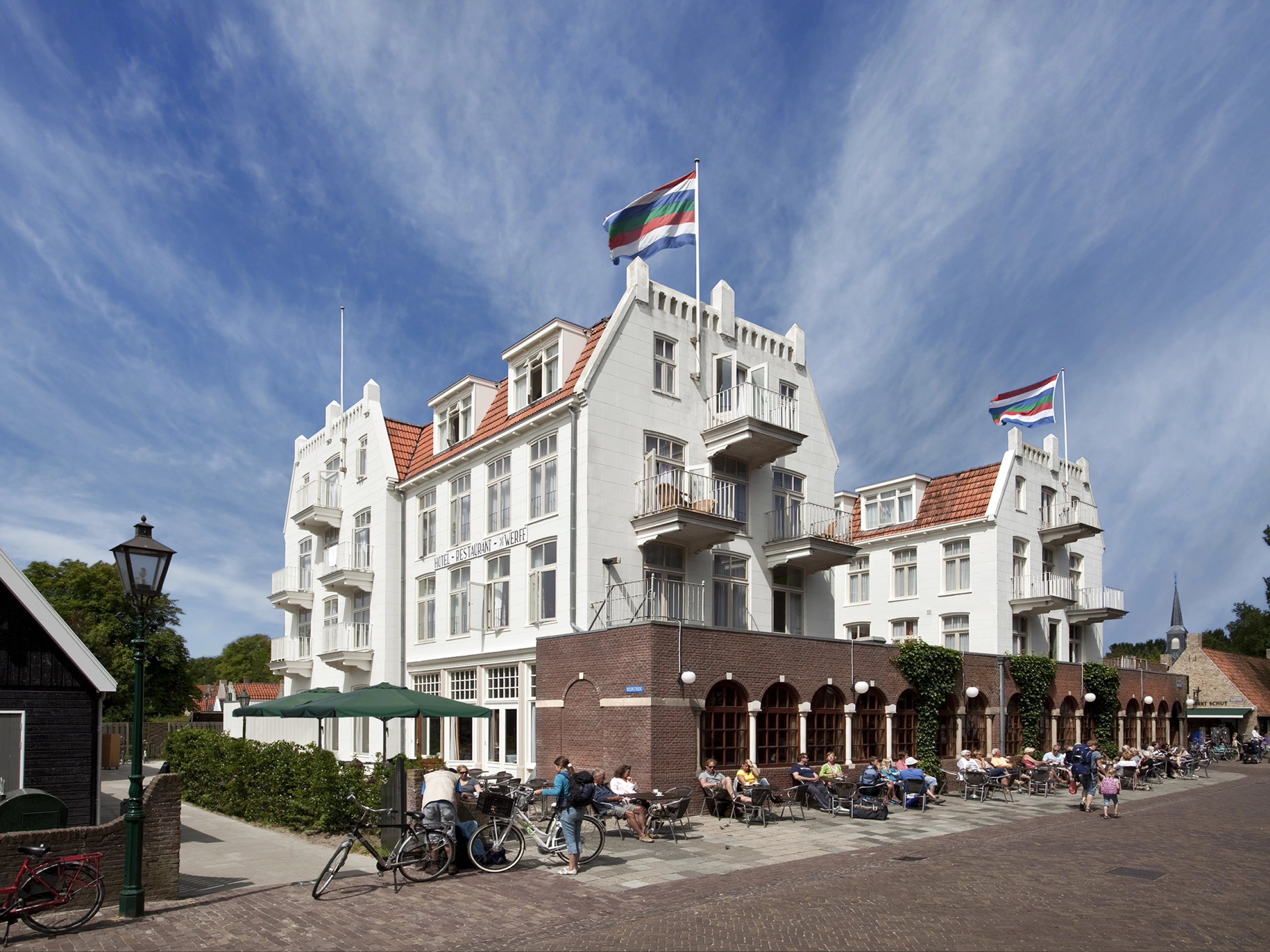 Het eerste en oudste hotel ter plaatse. De geschiedenis van dit hotel gaat terug tot de eerste helft van de achttiende eeuw, en is in de loop der tijden uitgegroeid tot een waar begrip, met een nog echte gelagkamer en lounge. Eigen tennisbaan voor gasten gratis beschikbaar. Alle kamers zijn voorzien van televisie, bad of douche en toilet. U wordt in stijl van en naar de veerboot vervoerd. Honden zijn op aanvraag welkom in het hotel, met uitzondering van de eetzaal. Hotel Van der Werff telt 57 kamers verdeeld over drie verdiepingen, bereikbaar met een lift. Er is keuze uit een-, twee- en driepersoonskamers. Er zijn twee kamers voor minder-validen. Ook zijn er 4 kamers en suite, bij uitstek geschikt voor gezinnen. Alle kamers zijn voorzien van bad of douche en toilet. Ook is er in elke kamer televisie en wifi-toegang. Honden zijn – in overleg – toegestaan op de kamers. Verder beschikt Van der Werff over een aantal moderne, comfortabele appartementen. Deze zijn (zeer dichtbij) achter het hotel gelegen.