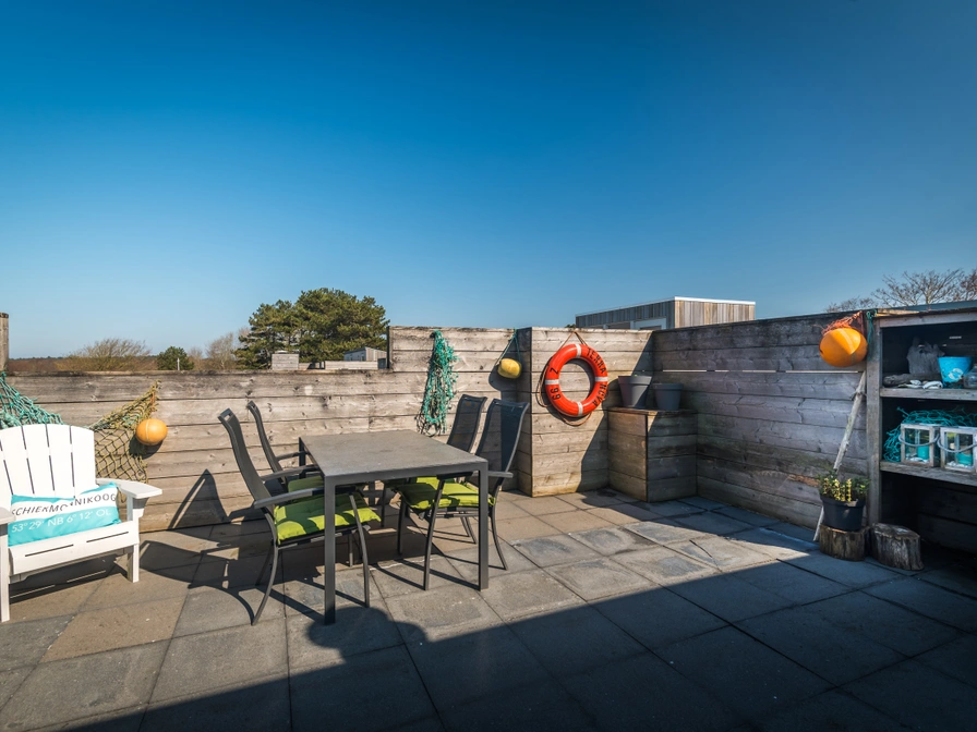 In comfortabel en ruim Schierduin 129 is het genieten van een groot dakterras, privé sauna en uitzicht op het duin