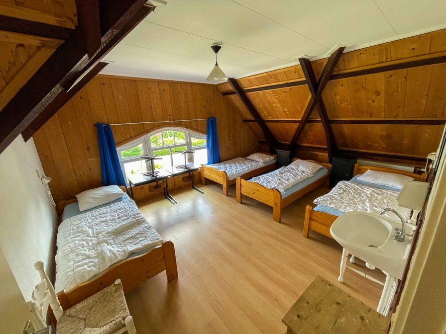 De authentieke details van het schoolgebouw zijn met zorg behouden, wat zorgt voor een bijzondere sfeer waarin je direct het gevoel hebt terug te stappen in de tijd, maar dan met alle moderne gemakken. De voormalige leslokalen zijn omgetoverd tot een ruime eetkeuken en een gezellige woonkamer, waardoor je alle ruimte hebt om samen te genieten van het gezelschap. De accommodatie biedt verder 6 comfortabele slaapvertrekken en maar liefst 3 douches en 4 toiletten verspreid over twee verdiepingen. De ruime tuin met zonnig terras biedt de perfecte gelegenheid om buiten te ontspannen.