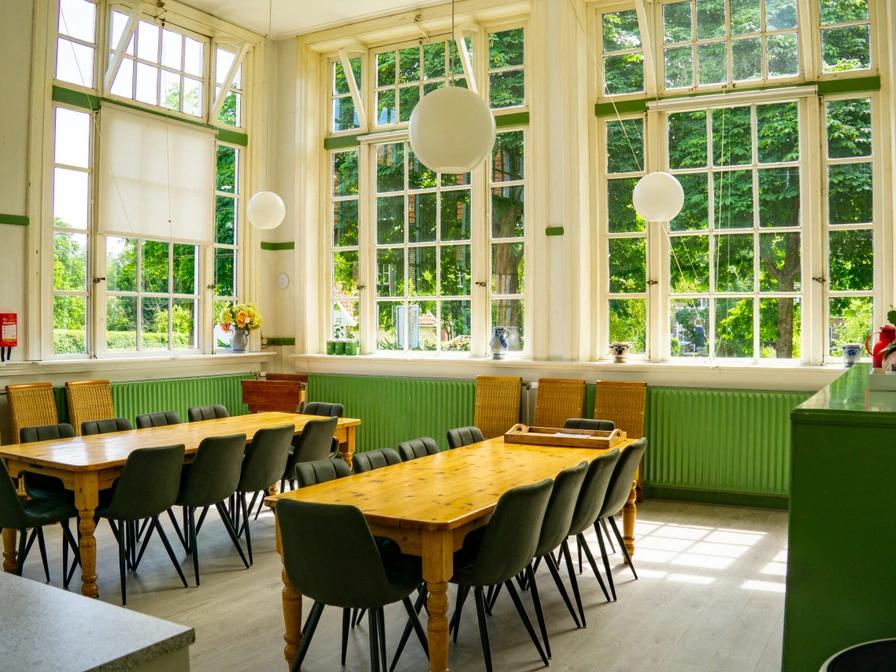 Al bijna 40 jaar verwelkomt deze sfeervolle accommodatie gasten die op zoek zijn naar een rustige, comfortabele en authentieke plek om met een groep te verblijven. De Aude Schúele is ideaal voor middelgrote gezelschappen tot maximaal 20 personen die een sfeervolle locatie zoeken voor hun vakantie. De naam "Aude Schúele" betekent letterlijk "oude school" in de lokale eilander taal en verwijst naar de oorsprong van dit bijzondere pand, dat vroeger dienst deed als schoolgebouw. De authentieke details van het gebouw zijn met zorg behouden, wat zorgt voor een bijzondere sfeer waarin je direct het gevoel hebt terug te stappen in de tijd, maar dan met alle moderne gemakken. Faciliteiten en indeling Begane grond: • Woonkamer (ca. 55 m²): Een sfeervolle ruimte met een flatscreen TV, digitale zenderopties, DVD-speler, Chromecast, en draadloos internet (WiFi). • Eetkeuken (ca. 50 m²): De ruime keuken is van alle gemakken voorzien, inclusief een 2 vaatwassers, 2 elektrische ovens, 2 vierpits gasfornuizen, filterkoffiezetapparaat, waterkoker en twee kinderstoelen. Keukenlinnen wordt verstrekt. • Sanitaire voorzieningen: 4 sanitaire ruimtes met 2 douches en 3 toiletten. • Slaapkamer 1: Twee éénpersoonsbedden. • Technische ruimte: Wasmachine, airfryer, blender, magnetron en Nespresso koffiezetapparaat. Bovenverdieping: • Badkamer met douche en toilet. • Slaapkamers: Slaapkamer 2: 4 éénpersoonsbedden Slaapkamer 3: 3 éénpersoonsbedden en een stapelbed Slaapkamer 4: 4 éénpersoonsbedden Slaapkamer 5: 1 tweepersoonsbed (140x200) en 1 éénpersoonsbed Slaapkamer 6: 2 éénpersoonsbedden en een ledikant Op de bedden liggen hoofdkussens en dekbedden. Het tweepersoonsbed kan desgewenst met één groot dekbed of twee aparte éénpersoonsdekbedden worden opgemaakt. Buitenruimte: Een ruime, gemeubileerde tuin met terras en speelveldje, waar je kunt genieten van het buitenleven. Huisdieren welkom Bij De Aude Schúele zijn huisdieren van harte welkom, zodat je jouw trouwe viervoeter ook kunt meenemen op vakantie naar dit bijzondere eiland. Of je nu op zoek bent naar een ontspannen vakantie met je gezin, vrienden of collega's, De Aude Schúele biedt een unieke en comfortabele plek voor een onvergetelijke groepservaring op Schiermonnikoog. Geniet van de rust, de natuur en de gastvrijheid van dit bijzondere eiland!