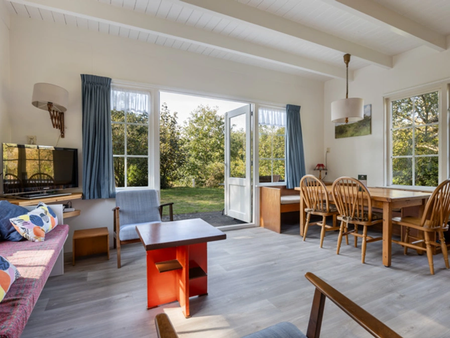Kijk Duin is een vrijstaand en sfeervol vakantiehuis met karakter en veel licht. De woning is geschikt voor maximaal 5 personen en straalt warmte en eenvoud uit. In de gezellige woonkamer zorgen houten plafondbalken en grote ramen voor een huiselijke sfeer en prachtig uitzicht op de duintuin. De keuken is kleurrijk ingericht en afgewerkt met authentieke tegeltjes, wat het geheel een eigen stijl geeft. Het huis beschikt over drie slaapkamers: één met een tweepersoonsbed, één met twee eenpersoonsbedden, en een knusse kamer met een enkel bed. Twee slaapkamers hebben een eigen wastafel. De badkamer is voorzien van een douche, en het toilet is apart, wat extra comfort biedt. Kijkduin is overzichtelijk en praktisch ingedeeld – ideaal voor gezinnen of wie graag alles binnen handbereik heeft. Ook aan jonge kinderen is gedacht: er is een kinderstoel, een reisbedje en speelgoed aanwezig.