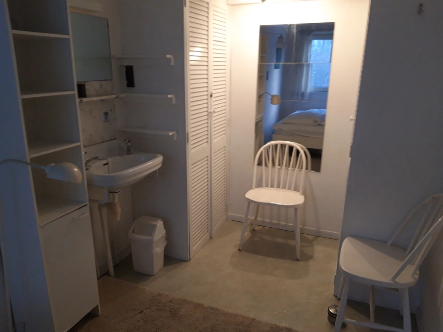 De Witte Bezem is een rustig gelegen, geschakelde vakantiewoning (twee-onder-een-kap) in de duinen. Het huisje is praktisch en comfortabel ingericht als echt familiehuis, met fijne leefruimtes en alles wat nodig is voor een ontspannen verblijf, in elk seizoen van het jaar. Woonkamer De woonkamer beschikt over een ronde, uittrekbare eettafel met vier stoelen en een zitgedeelte met een bank en twee fauteuils. Grote ramen op het zuiden en oosten zorgen voor veel licht. Lichtdoorlatende gordijnen bieden zonodig bescherming tegen de zon. Via een deur met hor loopt u zo het terras op. Er is een tv, een cd-speler met een ruime collectie cd’s en goede wifi, met de mogelijkheid om te streamen naar de aanwezige apparatuur. Dankzij de uitstekende verwarming, met eenvoudig te bedienen thermostaat, en overal dubbel glas, is het huisje ook in de herfst en winter comfortabel en behaaglijk. Keuken De keuken sluit via een tussenruimte aan op de woonkamer. Deze tussenruimte is ook een fijne speelplek voor kinderen. De keuken is uitgerust met een vierpits gasstel met afzuigkap, een elektrische oven, een magnetron, warm en koud water boven een dubbele spoelbak, een kleine koelkast, een lang aanrecht en veel kastruimte met inventaris. Slaapkamers Eén slaapkamer heeft een tweepersoonsbed met extra dekbed, een eigen cv-radiator, een wastafel met wastafelkast, twee houten stoelen, een muurkast voor gasten en een afgesloten privé-kast. De tweede slaapkamer beschikt over twee eenpersoonsbedden met extra dekens, een cv-radiator, een schrijftafel, twee houten stoelen, een grote kast voor gasten en een afgesloten privé-kast. Hier is ook een opklapbaar babybedje met matrasje te vinden, en dozen met wat speelgoed. In deze ruimte vindt u tevens vier comfortabele tuinstoelen met bijbehorende kussens. Badkamer en bijruimtes De entree komt uit in een kleine gang met toegang tot de badkamer en tot de wasruimte. De badkamer is voorzien van een cv-radiator, toilet, wastafel, douchecabine en elektrische ventilatie. In de aparte wasruimte staan een wasmachine, stofzuiger, droogrek, kinderstoel, schoonmaakspullen en een gereedschapskast.