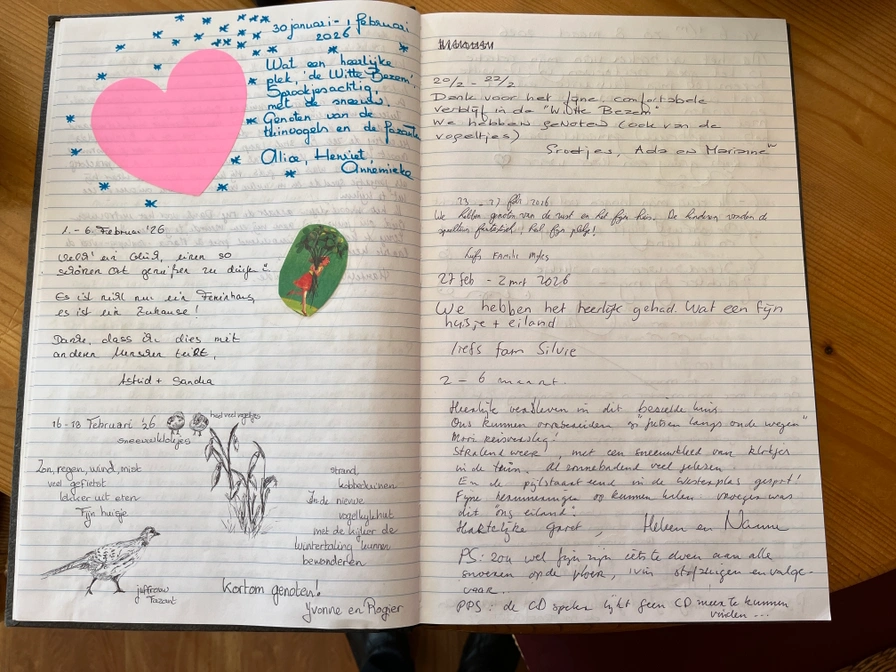 Wij zijn zeventigers en genieten zelf nog steeds met veel plezier van De Witte Bezem en van Schiermonnikoog. Ook onze twee kinderen, hun partners en onze vijf kleinkinderen komen hier graag. Het huisje is voor ons echt een familieplek, waar we in alle seizoenen graag verblijven. De Witte Bezem is al sinds 1996 in ons bezit. De naam van het huisje is ontleend aan een gedicht over de vuurtoren van Schiermonnikoog, geschreven door de vader van Gied, dichter Willem ten Berge. Die persoonlijke achtergrond maakt het voor ons extra bijzonder. Het huisje is ingericht als een echt familiehuis, met boeken, speelgoed en andere eigen spullen. We koesteren De Witte Bezem en merken dat veel gasten hier graag terugkomen. We vertrouwen erop dat u er met dezelfde zorg en aandacht mee omgaat, zodat ook anderen hier kunnen blijven genieten.