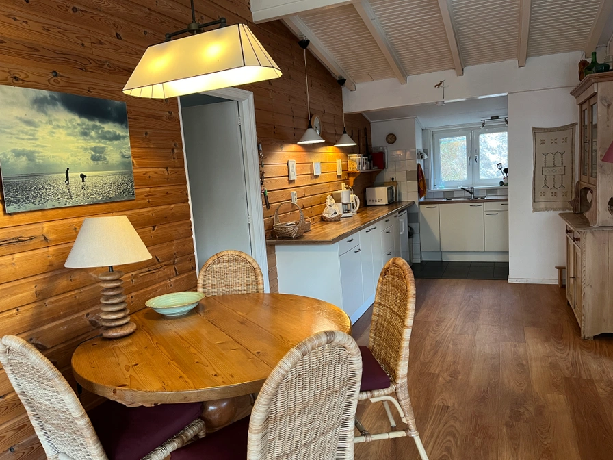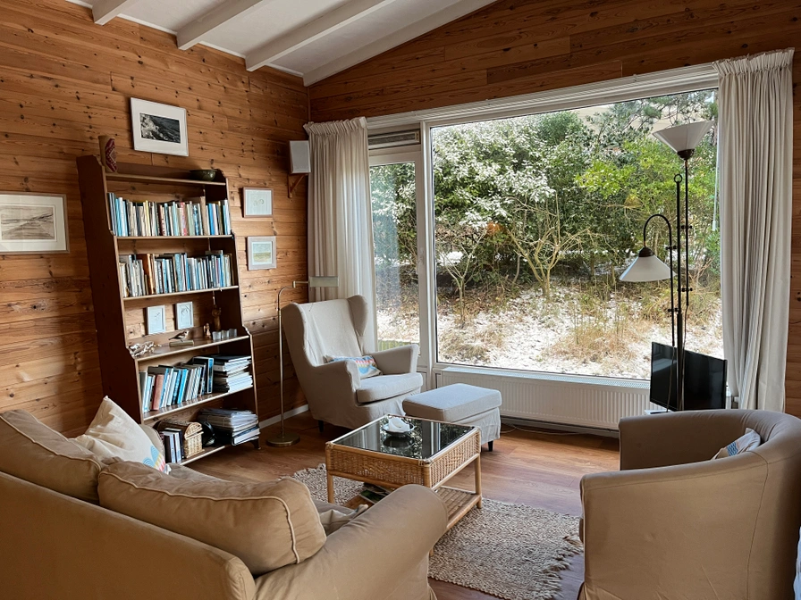 Vakantiehuisje De Witte Bezem ligt op Klein Zwitserland, in de duinen van Schiermonnikoog. Het ligt direct achter een hoog duin en kijkt aan drie kanten uit over het omliggende duingebied. De beschutte ligging zorgt voor veel privacy en een echt eilandgevoel. Terras en tuin liggen op het zuiden. Dankzij deze beschutte ligging kunt u bij zonnig weer soms al in februari comfortabel op het terras zitten. De tuin is omgeven door groen en voelt natuurlijk en levendig aan. Regelmatig lopen er konijntjes en fazanten voorbij en ook andere vogels laten zich hier vaak zien. Onder het dak nestelen soms zwaluwen. Achter in de tuin staat een grote, ritselende abeel die daar op warme dagen voor fijne schaduw zorgt. Vanuit de tuin loopt u zo de duinen in. Wandelen naar de vuurtoren, een tocht naar het Westerstrand voor een prachtige zonsondergang of een bezoek aan de vogelkijkhutten bij de Westerplas zijn allemaal direct vanaf het huis mogelijk. Voor dagelijkse boodschappen fietst u in ongeveer vier minuten naar de supermarkt. Het brede Noorderstrand bereikt u in circa negen minuten fietsen. De ligging van De Witte Bezem maakt het huisje zeer geschikt voor gezinnen met kinderen, liefhebbers van rust, natuur en buiten zijn, in elk seizoen van het jaar.